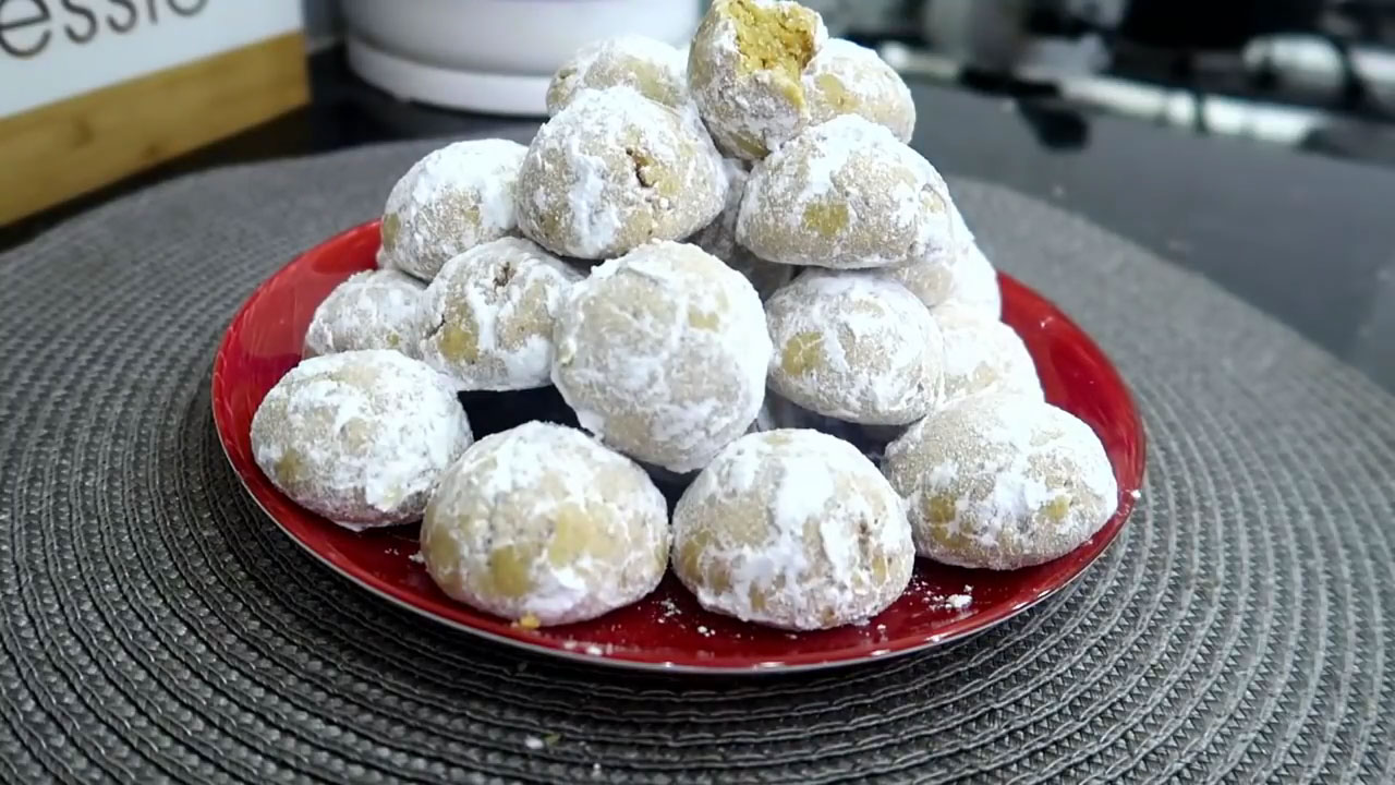 نشكل العجينة كرات و نضعهم في صينية فيها ورق طهي ثم ندخلها للفرن ساخن على 180 درجة حتى تطيب، و بعد ما يبردوا نرمدهم فالسكر غلاص